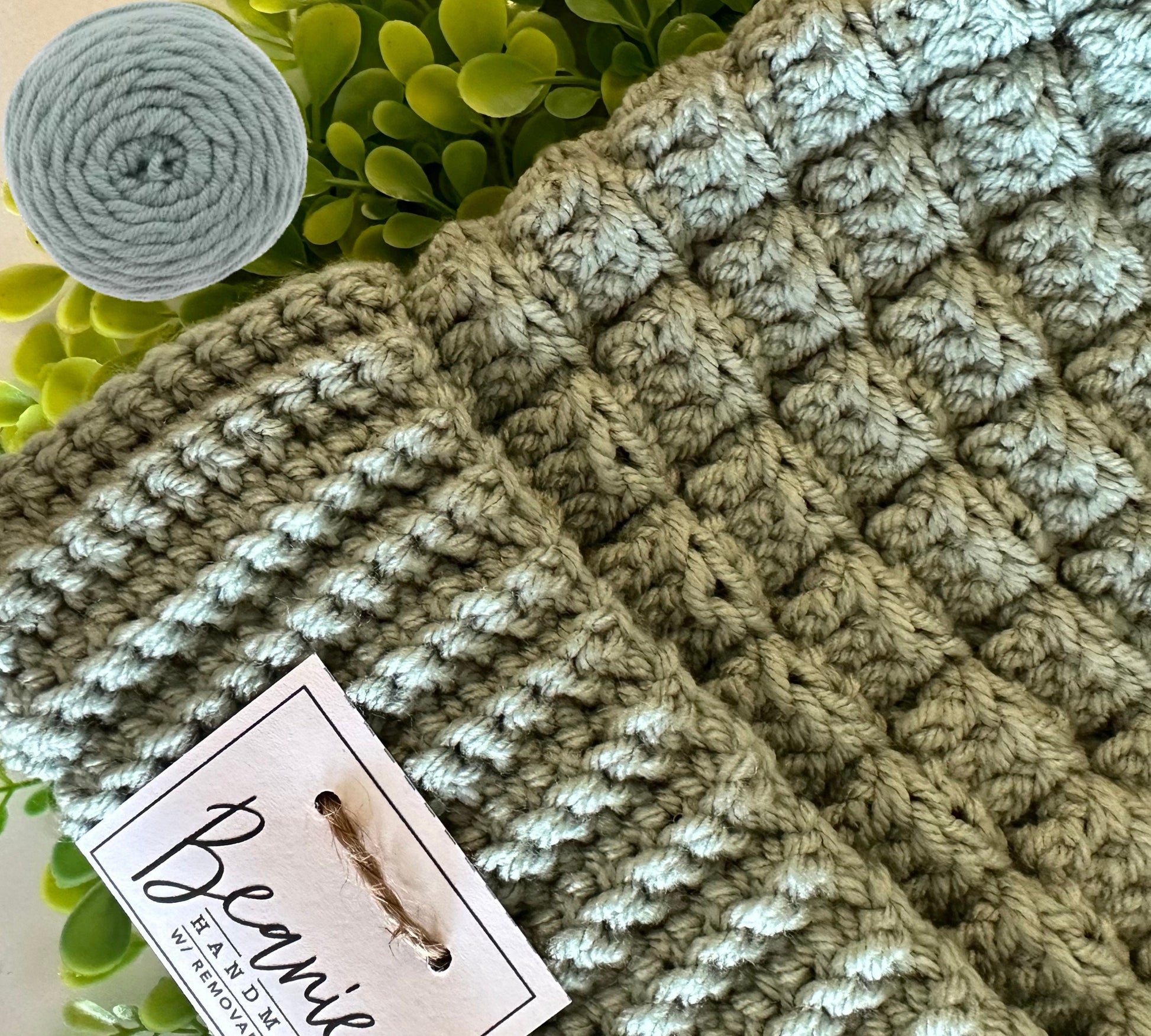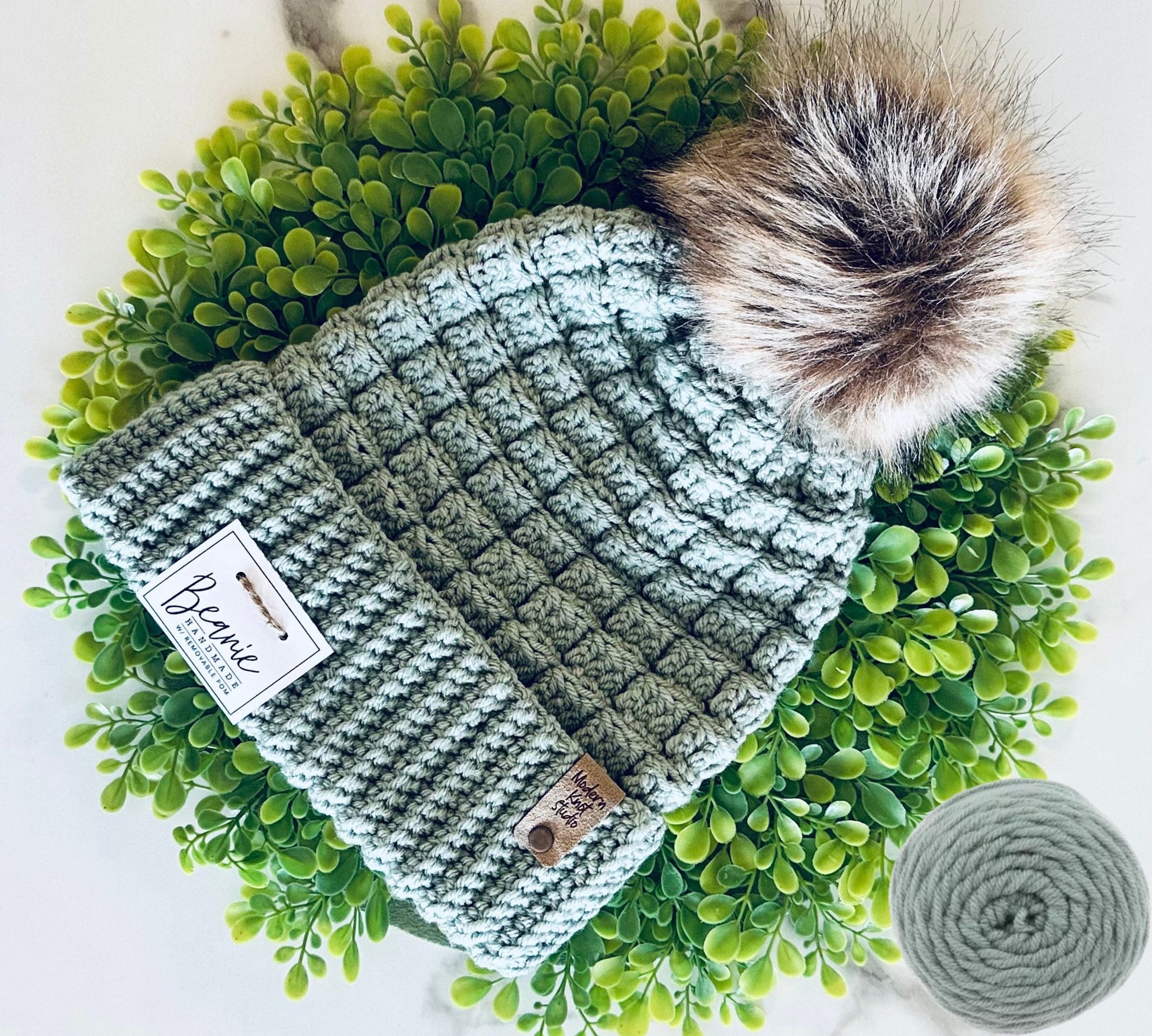 Stay warm and stylish with this handcrafted crochet beanie, featuring a textured waffle like stitch and a soft faux fur pom pom. Made with high quality yarn, this cozy hat has a snug ribbed cuff and is perfect for any winter day. available in multiple sizes for a comfortable fit for everyone.